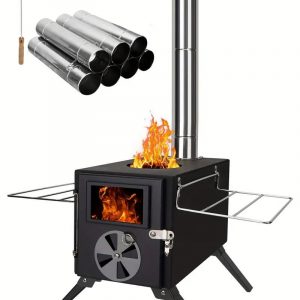 NNETM Outdoor Camping Wood Stove with Fire Viewing Window