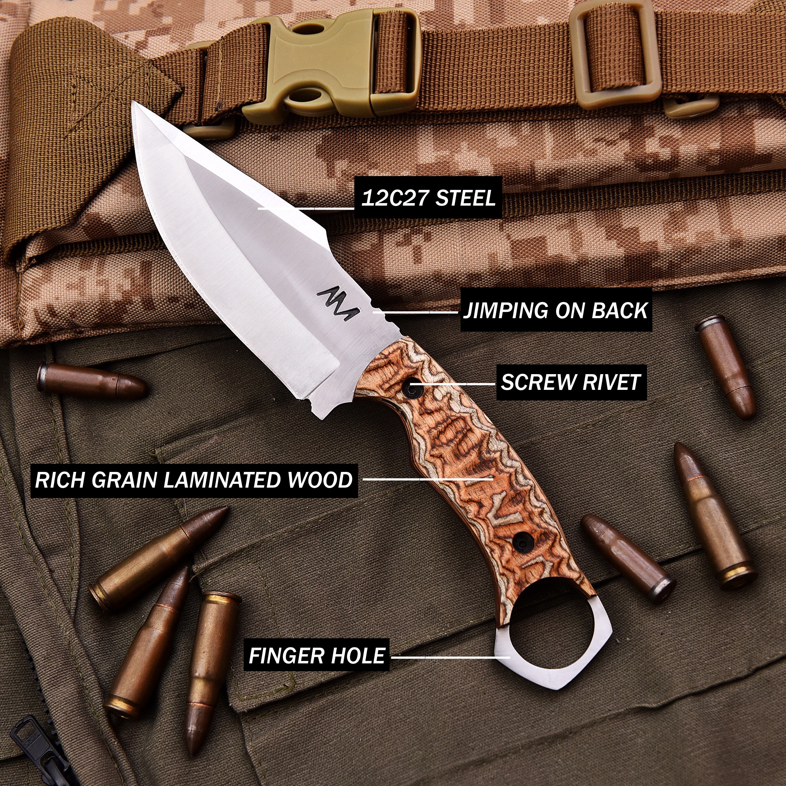 Premium 12C27 Steel Blade – High carbon stainless steel offers razor-sharp performance and superior edge retention, perfect for hunting, skinning, and slicing.