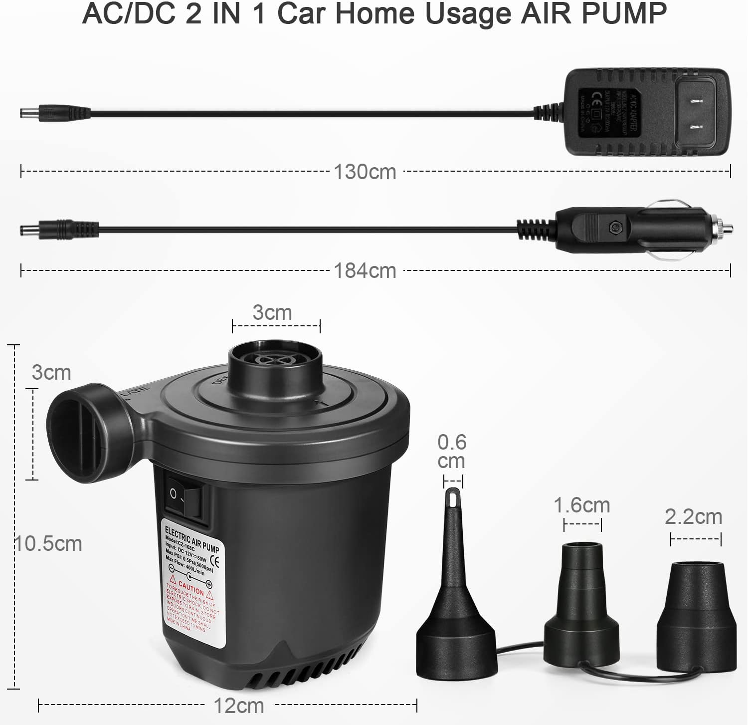 - Wide Range Use- Come with a car power adapter & a home power adapter to effectively prepare you for both outdoor and indoor use, beside air mattress, you can also pump inflating airbeds, inflatable sleeping bags, rafts, inflatable floating island, inflatable pool toys, floating picnic tables and more