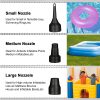 - 3 Different Size Nozzles for Different Needs- S size nozzles — for small inflation port toys or swimming rings. M size nozzle – for small hole airbed, inflatable pool or seat. L size nozzle -for inflate air mattress, inflatable pool or boat