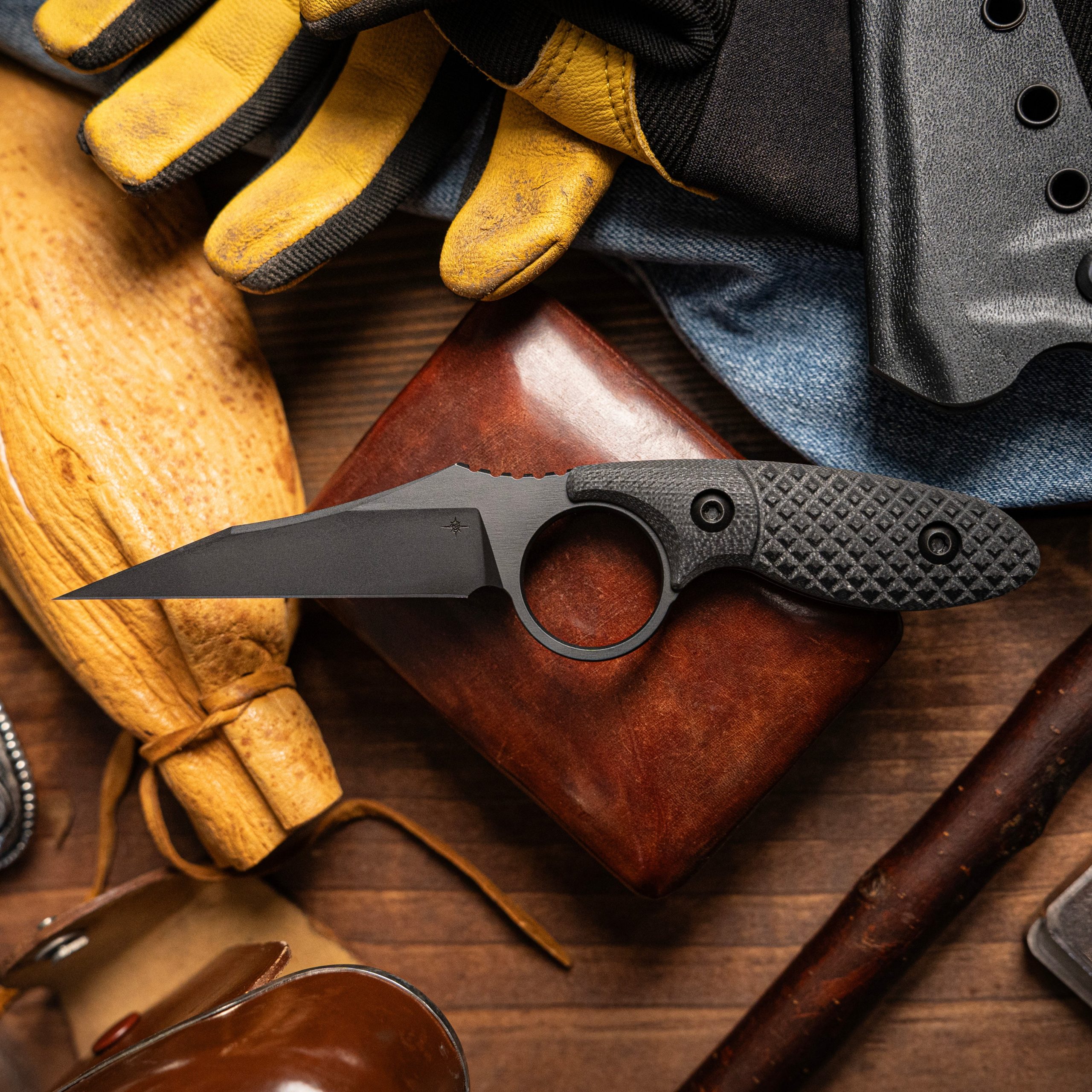 But what truly sets the Cortano apart is its central retention ring, a design element inspired by gloves-on grip work and high-stress conditions. The ring is sized to be operable under pressure, even when your motor skills aren’t perfect. Positioned dead center, it allows for rapid indexing and immediate deployment, especially in its intended scout-carry position. The custom sheath leaves the ring exposed for this very reason, making it possible to deploy the Cortano with nothing more than a finger hook and a forward motion.