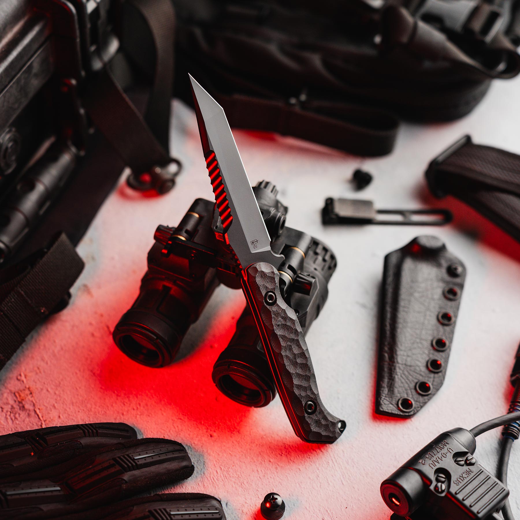 Highlights of The Darter Tanto include the now iconic reverse serrations on the spine, which offer an extremely sharp solution to fighting with the back of the knife. Additionally, the tanto blade shape provides strength and durability, and the sharp, angular tip is excellent for piercing through tough materials. Its Black G10 handle with Red liner is machined with a texture to match the iconic Haley Strategic dragonfly wing pattern, while also offering excellent grip when wet.