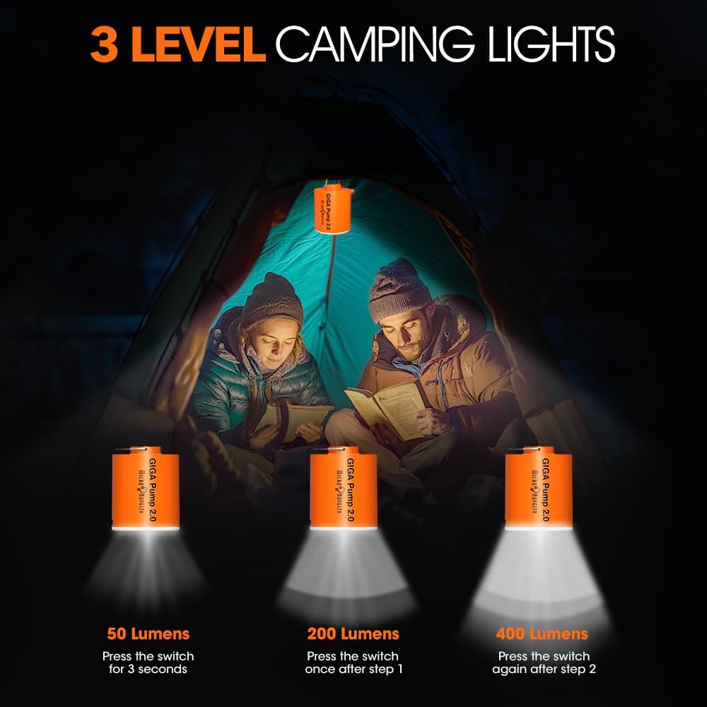 - ✔ 【ULTRA-LIGHT & MULTI-PURPOSE DESIGN】: Weighing just 2.8oz and measuring about 1.6″ x 1.6″ x 2″H, this 3-in-1 portable air pump, lantern, and vacuum pump reduces pack weight for campers, hikers, and travelers. Its compact profile ensures easy storage in backpacks or gear bags, making it a go-to choice for outdoor adventures. (Note: Not suitable for products requiring high pressure, such as balloons, footballs, or tires)