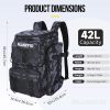 - Large Backpack with 16 Storage Pockets – PLUSINNO fishing backpack has a 42L large capacity storage space for all your essentials for a day of fishing. Size: 36.5 x 25.5 x 45.7 cm. This fishing tackle backpack contains 16 independent pockets and storage areas that provide enough space to organize all your fishing gear and accessories, such as fishing rods, reels, pliers, tackle boxes, fishing tools, controllers, water bottle, etc.