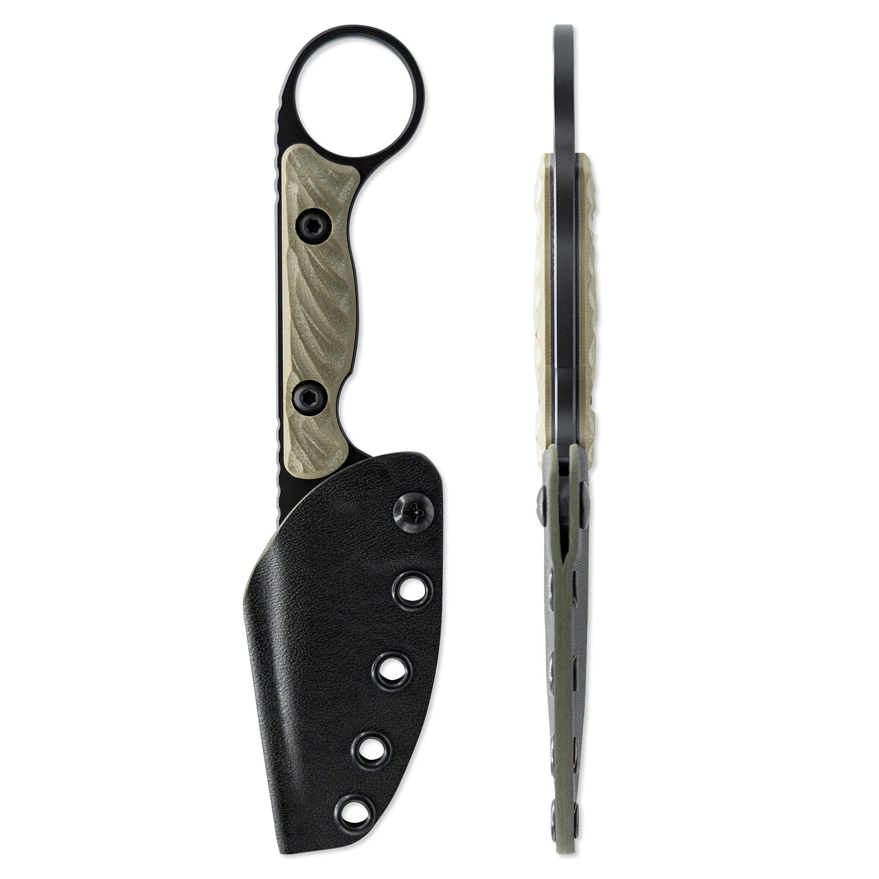 Each blade comes equipped with a custom DuoTone™ KYDEX® sheath featuring adjustable retention and multiple friction offsets to eliminate blade rattle while maintaining a secure, dependable carry.