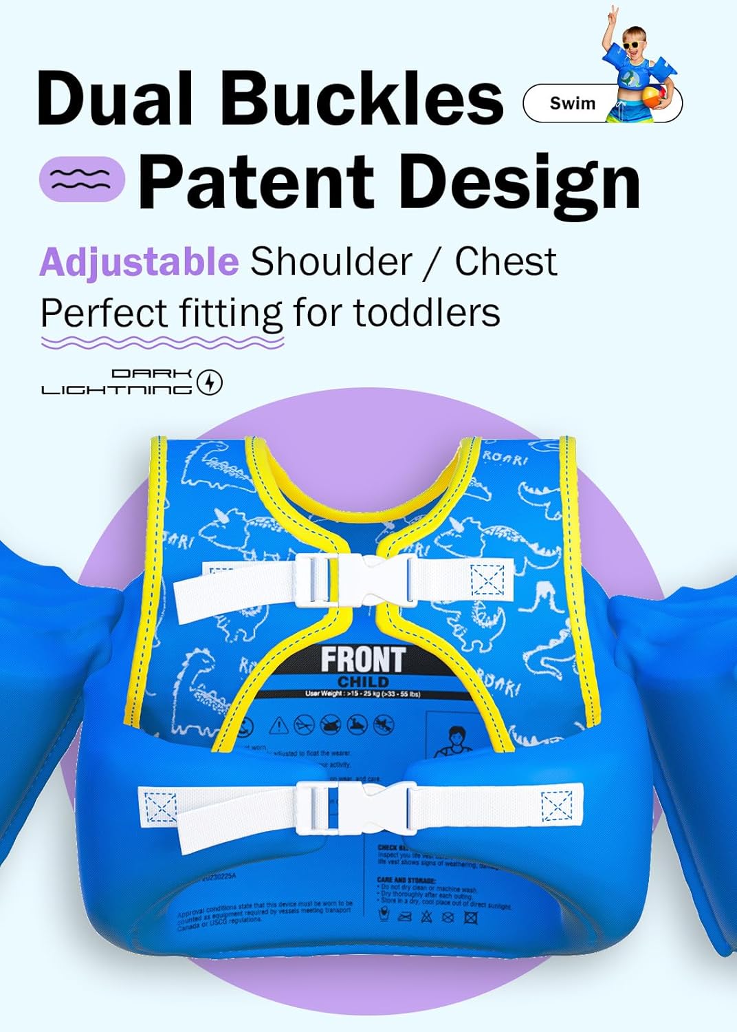 - USCG Toddler flotation life jacket with arm wings keeps your kids safe and is the best pool swimming float for kids