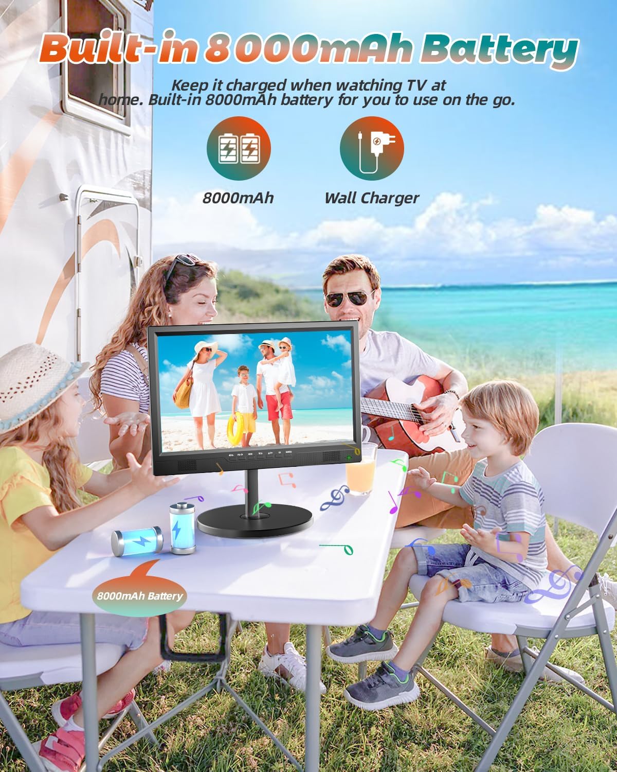 - Adjustable Stand & 8000mAh: The inclusion of a built-in adjustable stand and rechargeable in our portable mini TV not only enhances convenience but also ensures versatile viewing experiences anytime, anywhere. Enjoy your favorite shows and movies effortlessly, whether at home or going camping, with convenience at your fingertips