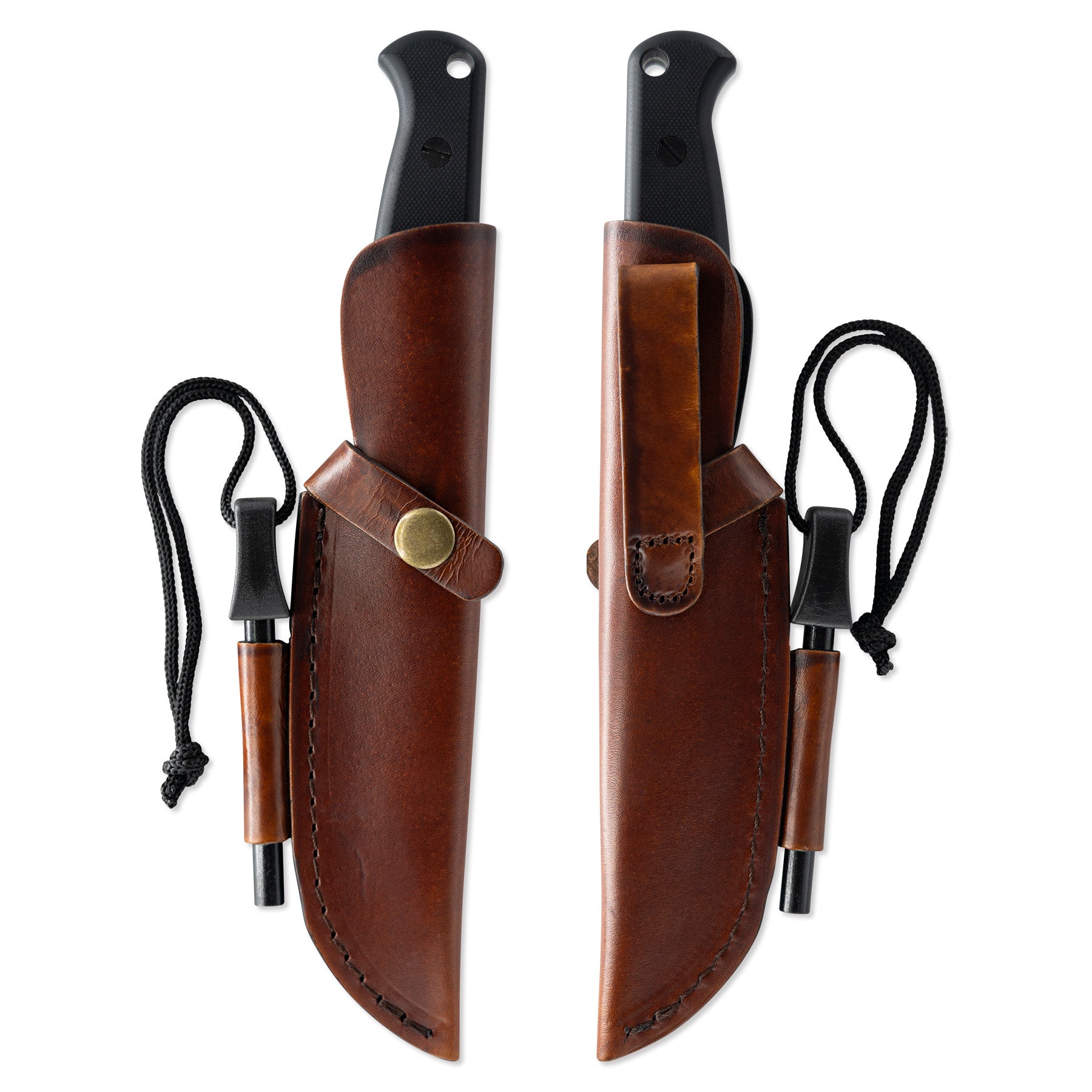 The Wanderer has a smooth G10 handle designed to provide exceptional comfort during prolonged use. This ergonomic grip ensures a secure hold, crucial when tackling extensive cutting tasks or performing challenging outdoor activities. Each knife also comes with a premium leather sheath that includes a belt loop for convenient waistband carry and a dedicated slot for the included Ferro rod, ensuring that you have all the essential tools for survival at your fingertips. With its versatile design and practical features, The Wanderer stands as the ultimate survival, hunting, and camping knife, ready to accompany you on your adventures through the wilderness.